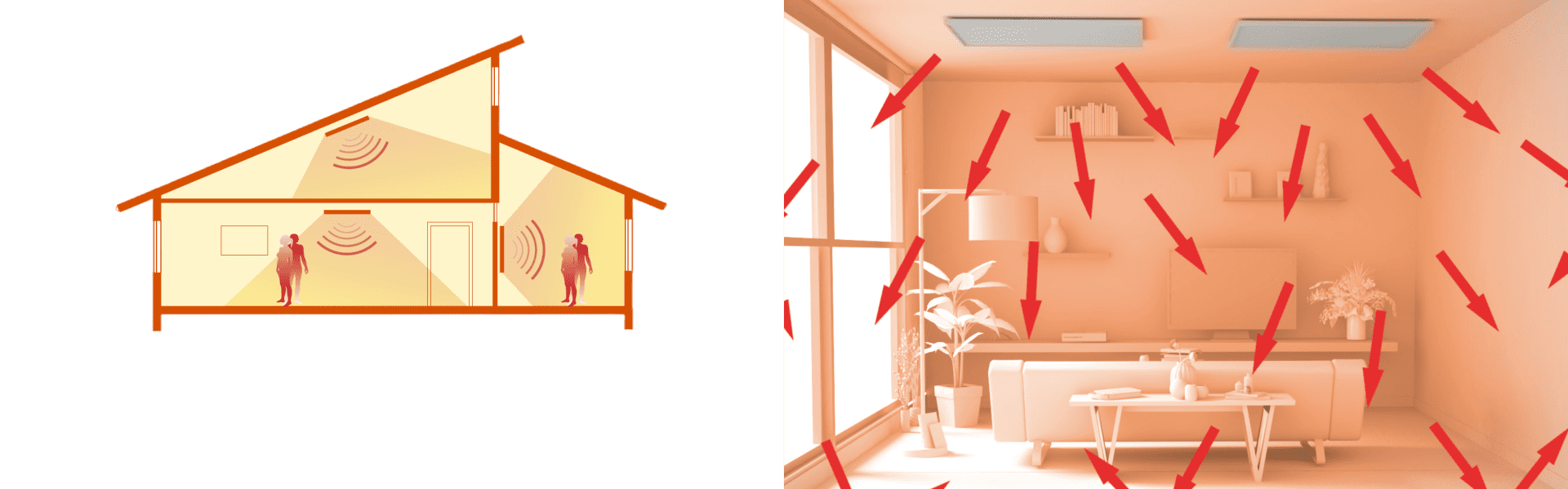 Dit principe wordt bereikt door het gebruik van infraroodstraling, een type energie dat zich uitstrekt over objecten en ruimtes zonder lucht als medium nodig te hebben. Deze straling wordt door de objecten geabsorbeerd, wat resulteert in directe warmte. Mensen en objecten geven op hun beurt deze warmte af, waardoor een comfortabele omgevingstemperatuur wordt gecreëerd.
