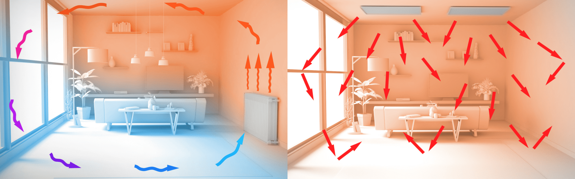 Deze traditionele systemen zijn vaak afhankelijk van fossiele brandstoffen, wat belastend is voor het milieu en kan leiden tot fluctuerende energiekosten, vooral naarmate de prijzen van deze brandstoffen stijgen. Bovendien kan het verwarmen van lucht resulteren in een ongelijkmatige warmteverdeling, met warme en koude zones in dezelfde ruimte. Dit kan een inconsistent comfortniveau veroorzaken en de noodzaak om de thermostaat hoger te zetten, wat op zijn beurt leidt tot hogere energiekosten.